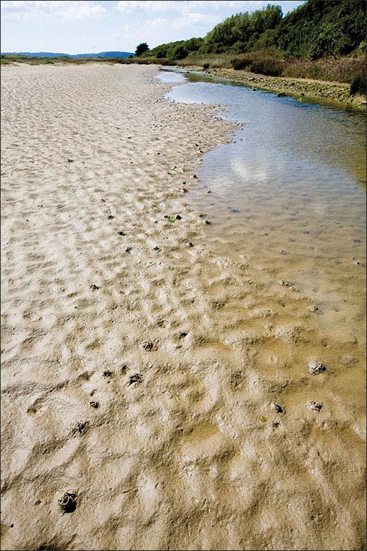 Estuaire (1130) ➔ Les dépôts sableux plus fins sont principalement concentrés près de la côte, au niveau des baies et des havres. Ce sont les sédiments les plus mobiles. Les particules les plus fines se concentrent dans les fonds d’estuaires, des espaces intimement liés aux débouchés des fleuves côtiers. Dans ces écosystèmes «estuariens», les apports d’eaux douces du bassin versant assurent un renouvellement important des apports nutritifs, favorisant un développement du plancton et des végétaux supérieurs à celui de la mer ouverte entrainant des densités élevées d’organismes les consommant. Ils sont aussi mis à profit par tout un cortège d’organismes marins, qui viennent s’y nourrir, s’y abriter ou s’y reproduire.