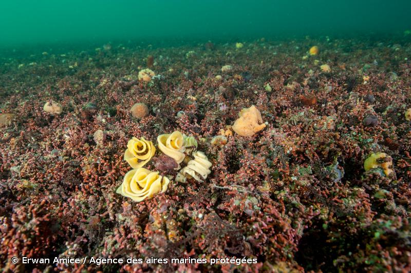 Les bancs de maërl ➔ Le terme « maërl » désigne un habitat constitué d’algues calcaires non fixées, appartenant principalement aux espèces Lithothamnium corallioides et Phymatholithon calcareum. Ces algues à croissance très lente (entre 0,5 et 1 millimètre par an), forment des branches évoquant certaines formations coralliennes. Reconnu pour sa biodiversité exceptionnelle, le maërl fait cohabiter des espèces de milieux meubles et des espèces de milieux rocheux. Plus de 900 espèces d’invertébrés et 150 espèces d’algues ont ainsi été recensées sur le maërl des côtes de Bretagne. Aujourd’hui en danger, ces accumulations d’algues calcaires rouges sont à protéger en priorité.